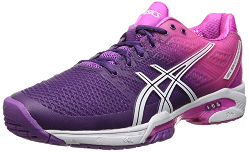 Settle in for a lightweight, supportive ride with the updated ASICS GEL-Solution Speed 2 shoe. Designed with elite tennis players in mind, this women's athletic shoe features a breathable mesh upper with Flexion FitTM forefoot wraps that provide support during lateral movements. The Impact Guidance System (I.G.S.) enhances the natural gait, The heel is lined with P.H.F. memory foam for an exacting fit. The PGuardTM toe protector enhances durability Rearfoot and forefoot GEL cushioning absorbs shock and enhances comfort; the Solyte midsole lends support. The abrasion-resistant rubber outsole of the ASICS GEL-Solution Speed 2 sneaker provides reliable traction and lasting durability.Feature
