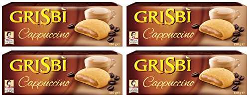 Vicenzi: "Grisbi Cappuccino" Italian Shortcrust Biscuits filled with Cappuccino Cream - 5.3 Ounces (150g) Package (Pack of 4) [ Italian Import ]