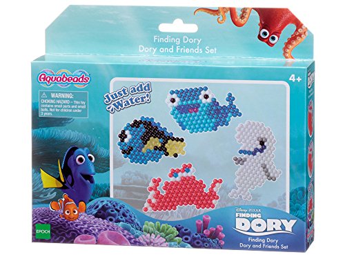 Aquabeads is the original water-activated bead craft product. Made from the highest quality materials, Aquabeads are fun and safe for the entire family. The Finding Dory Character Set is the perfect accompaniment to any Aquabeads Playset. Create your favorite characters - Dory, Nemo or Charlie. Select a design template, place layout tray over template and create your design. When done, spray with water and the beads will magically stick together. This set contains classic and jewel beads in 13 colors, sprayer, layout tray, 3 templates and instructions. Creating Aquabeads is easy - it's as simple as make, spray and they stay!Feature