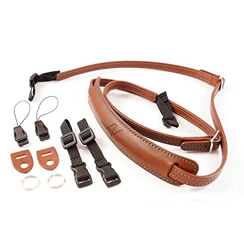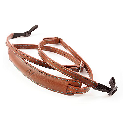 4V Design Lusso Tuscany Leather Slim Handmade Leather Camera Strap w/ Universal Fit Kit, Brown/Cyan (2SP01BVV2330)