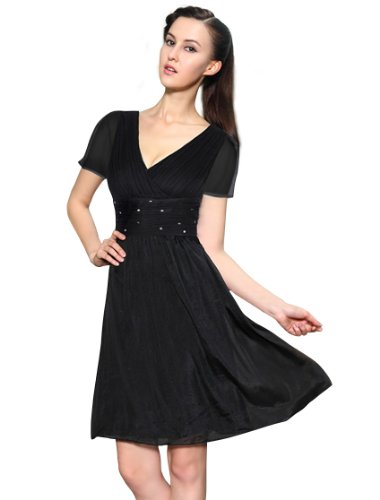 V-neck short sleeve party dress.Padded enough for "no bra" option.Unique ruched bust and waist creates an elegant silhouette.Nonremovable rhinestones decorate the waist area.Concealed zipper up the back.Lining, no stretch.The sleeve length of size 8-18 are 18cm-20cm,18cm-20cm,18cm-20cm,20cm-23cm,20cm-23cm,20cm-23cm.The shoulder across of size 8-18 are 35cm,37cm,38cm,39cm,40cm,42cm.The sleeve opening of size 8-18 are 35cm-38cm,38cm-40cm,38cm-40cm,40cm-43cm,43cm-45cm,43cm-45cmFeature