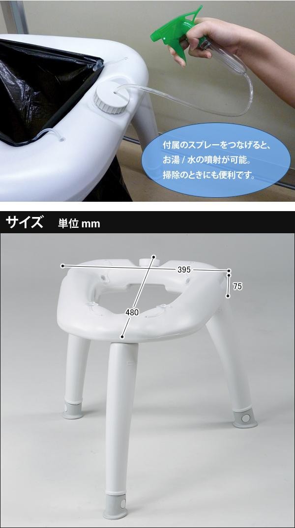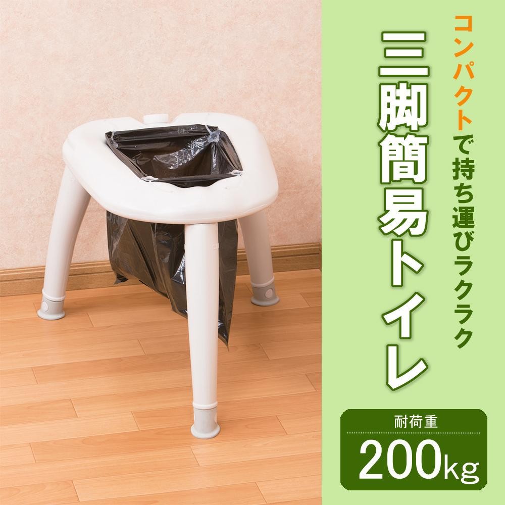 | 三脚を立てれば簡易トイレのできあがり!付属の処理袋をセットすればすぐ使用できます。レジャー&災害対策に最適です。座面にお湯を入れればあったかい♪ |