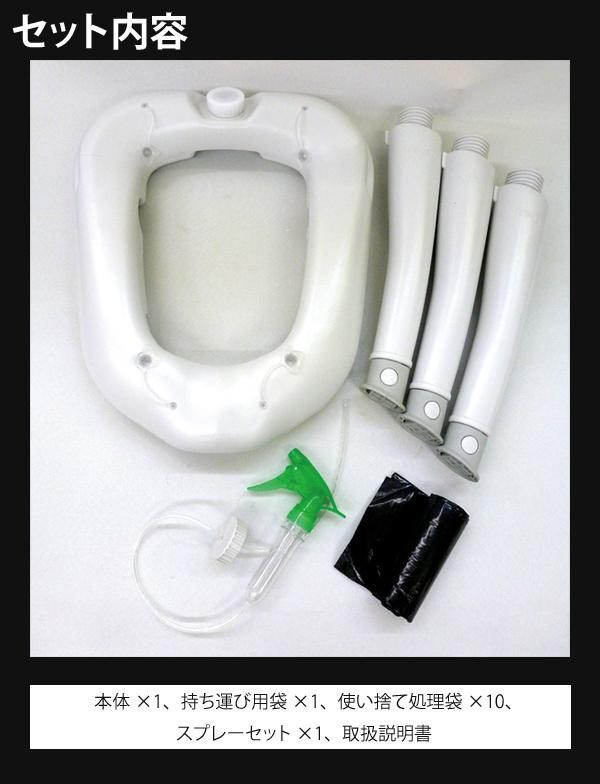 | セット内容 | 本体×1、持ち運び用袋(56×50×8cm/枚)×1、使い捨て処理袋(50×40cm/枚)×10、スプレーセット×1、取扱説明書 |