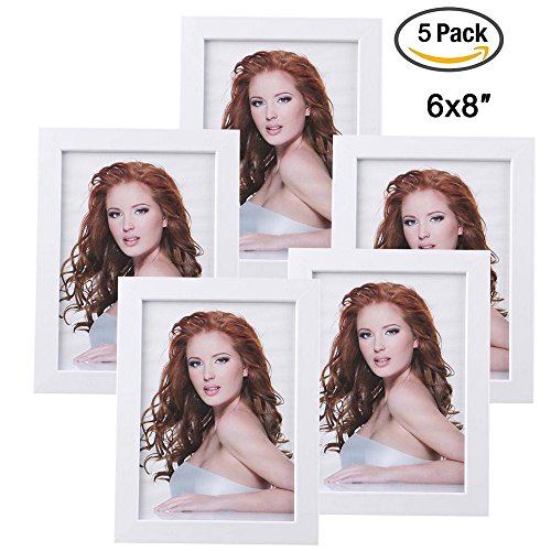 leoyoubei Thickness Photo Picture Frame Wall Decor, Display Horizontally Or Vertically Frame Economic Framework(Containing Wall Nails) 5 Pack (6x8, White)