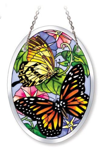 Amia Beveled Glass Small Oval Suncatcher Hand-Painted Butterfly Design, 3-1/2 by 4-3/4-Inch