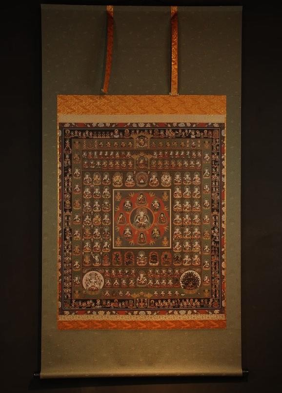 | ひとりで持ち運び可能な大きさです。大型の迫力ある掛け軸で、寺院さまはもとより、一般の方々にも最適の作品です。ご信仰のシンボルとして、行のお供に是非いかがでしょう。 |