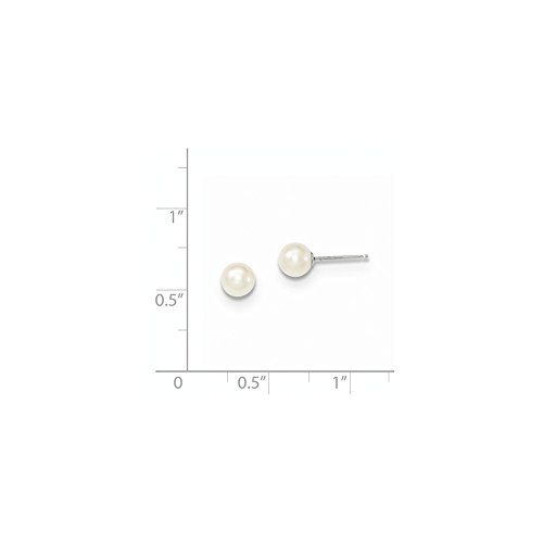 Solid 14k White Gold 5-6mm White Round FW Cultured Pearl Stud Earrings
