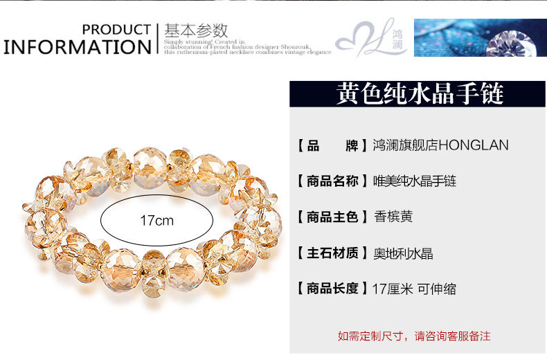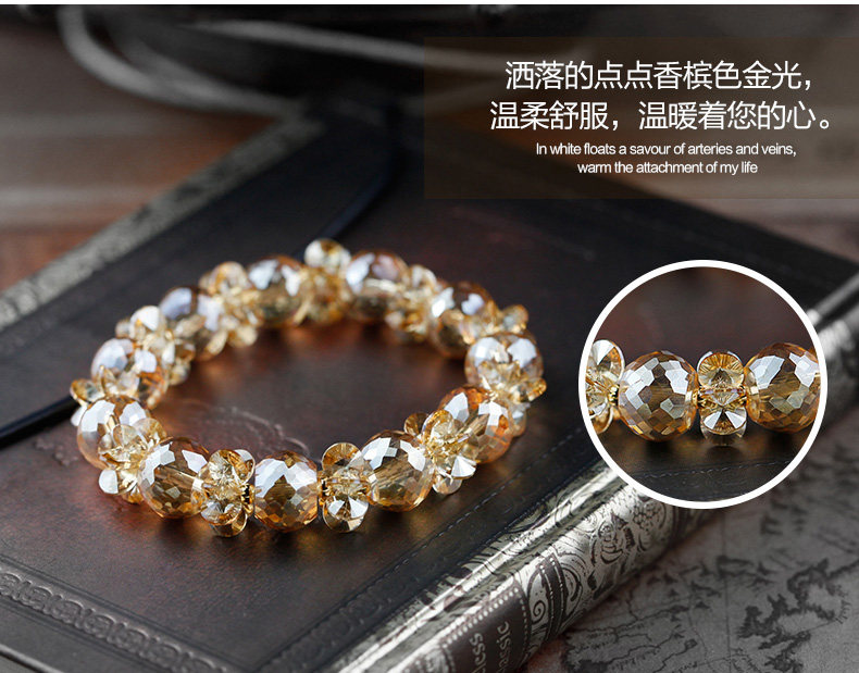 奥地利香槟黄色水晶手链女甜美韩版时尚简约茶色女士生日礼物
