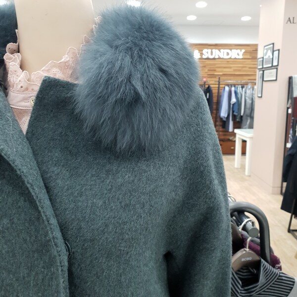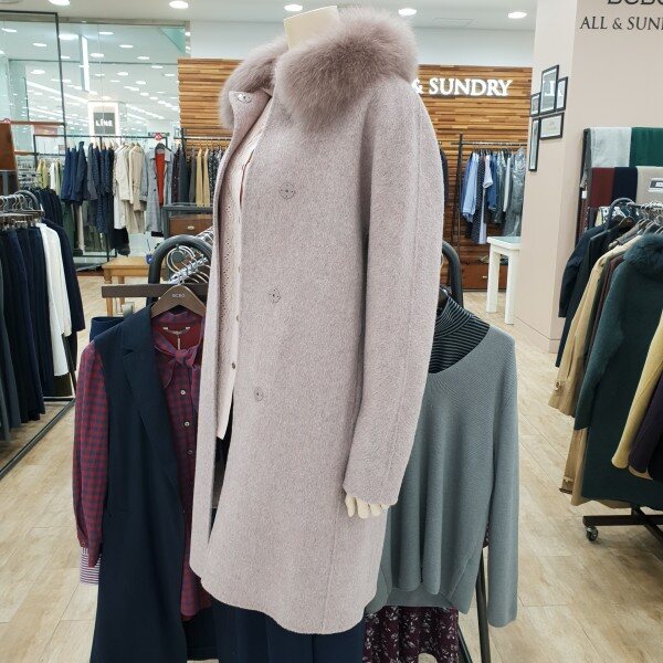 폭스퍼가 트리밍된 고급라인의 모혼방 앙고라 롱코트딥한 그린,핑크컬러가 매력적인 겨울코트