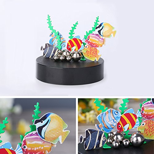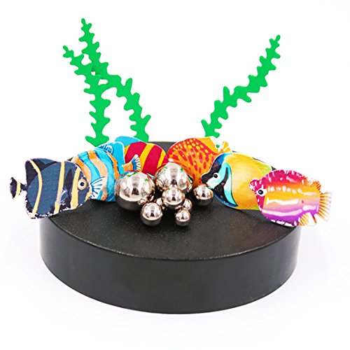 -. Feature : MATERIAL - The desk toy is made of magnet, high quality ABS and stainless steel. / ITEM INCLUD - The magnetic sculpture includes 6 tropical fishes, 3 seaweed, 8 balls of different sizes, and one oval base. / FUN DESIGN - The metal pieces are not magnetic, only the square base is. You can use the magnetic base to stack the metal pieces high to make different sculptures. / FUN FOR ALL AGES - Everyone has fun with this toy. / WELL PACKAGED - The magnetic toy is well wrapped with a great quality box, you can buy it as a gift.