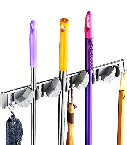 Cinlv Broom Mop Holder Wall Mounted Tool Storage Tool Rack Utility Holder Home Organization Storage Solutions Kitchen Tool Organizer for Closet Organizer