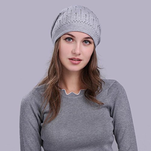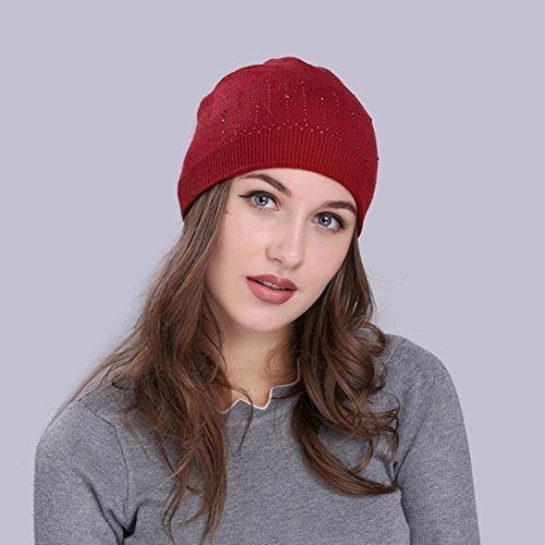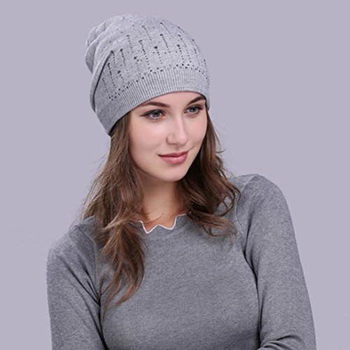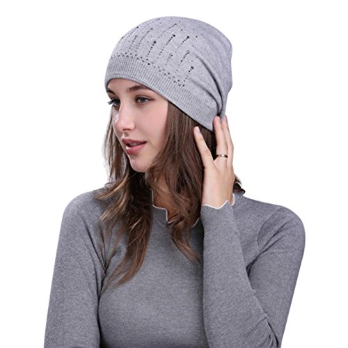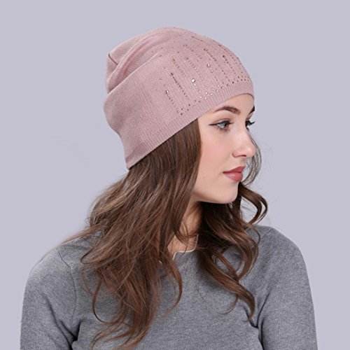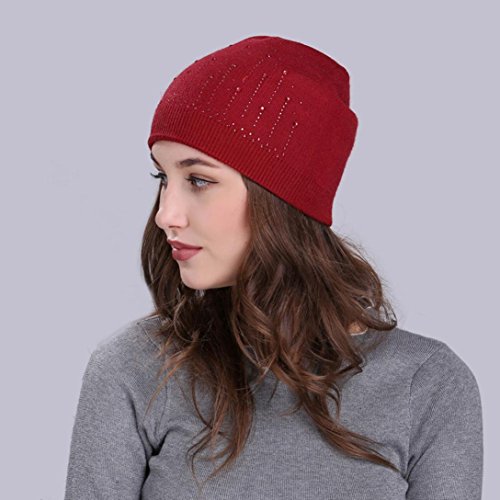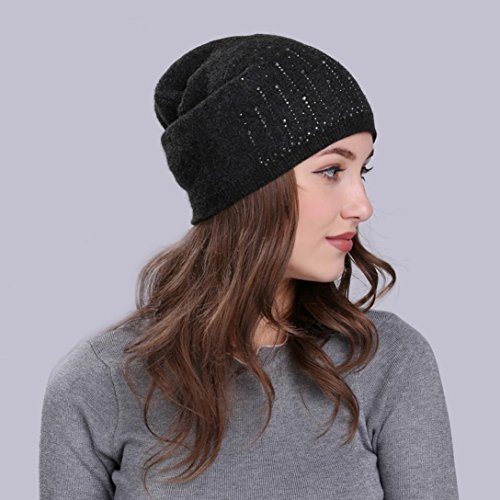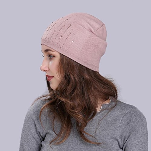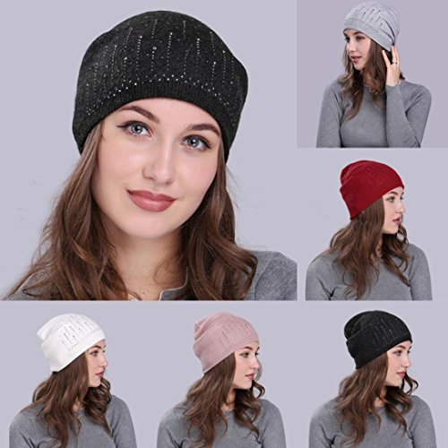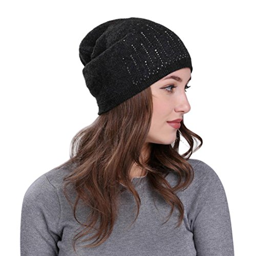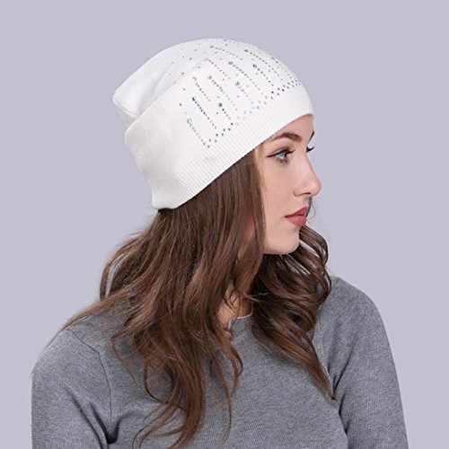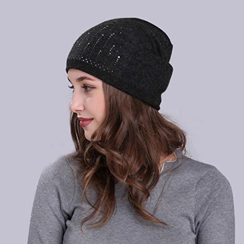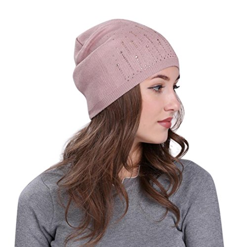 (Fiaya)/Accessories/Hats/DIRECT FROM USA/Fiaya Women Solid Drill Beanie Knit Ski Cap Elastic Wool Hat