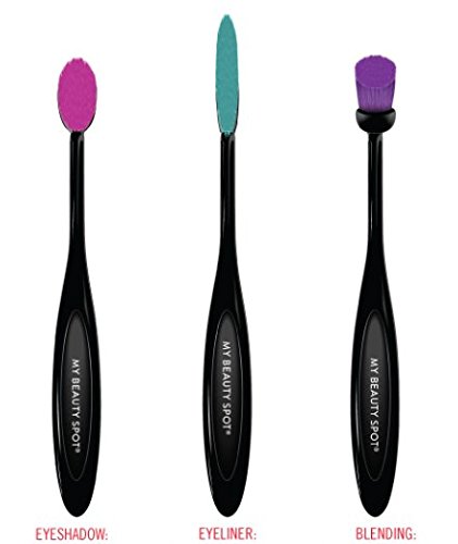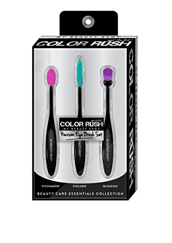 Includes - 1 Soft Oval Hot Pink Bristled Eye Shadow Brush - 1 Flat Long Turquoise Bristled Eyeliner Brush - 1 Soft Round Purple Bristled Eye Makeup Blending Brush