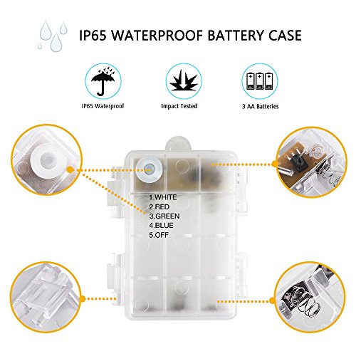 - IP67 Waterproof Fairy String Lights: 3 AA battery required (not included). Both string lights and battery case are fully sealed. Perfect for outdoor using. No worry for rain and water but please avoid placing under water for a long time
