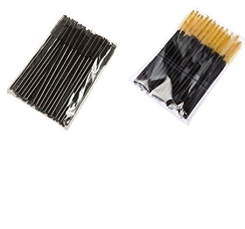 ALINCAS (TM) 50pcs Yellow & 50pcs Black Disposable Eyelash Mascara Applicator Wand Brush