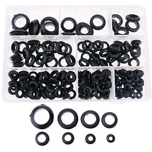 Glarks 195-Piece Rubber Grommet Assortment Kit for Electrical Conductor Gasket Tool, Cable & Plug Wire Rings for Wires running through Furniture, Firewalls & Protecting Metal Junction Areas
