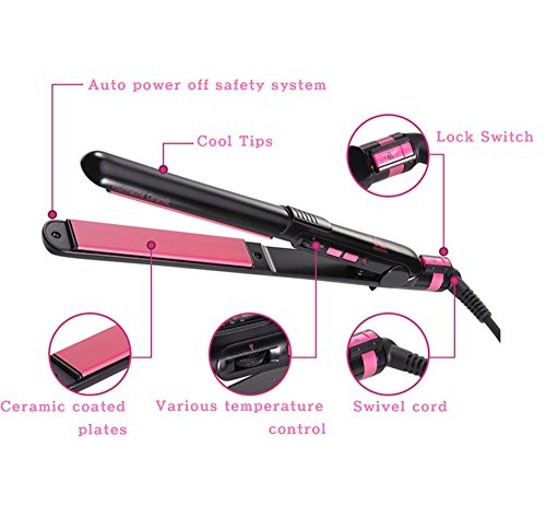 Function: Auto power off safety system, Cool Tips, Lock Switch, Ceramic coated plates, Various temperature control , Swivel cord, Moving hot plate , Prevent hair damage