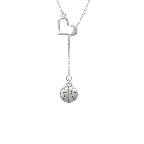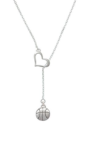 Silver Tone Large Basketball Heart Lariat Necklace. Silver Tone, hand enameled charms. Charm size is approx. 0.63 x 0.5 x 0.22 inches (HxWxD) including loop. Necklace is adjustable from 18 to 20 inches. Necklace comes with lobster claw clasp and 2 inch extender chain. Heart Lariat necklace with open heart design is exclusive to Delight & Co. PLEASE NOTE: Our products are lead safe, but are not intended for children 14 years and younger.Feature