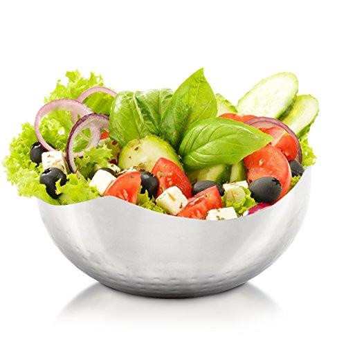 KooK 10 Inch Hammered Style Wave Serving Bowl - Stainless Steel