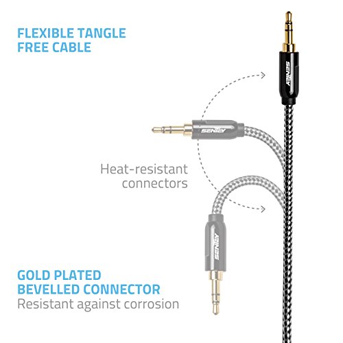 Title : Sentey Black LS-6621 Audio Stereo Cable 6FT, 3.5mm Braided Stereo Aux Cable Audiophile Grade Male to Male, Cable Audio Premium Metal Stereo Audio Cable Connector and Shell Premium