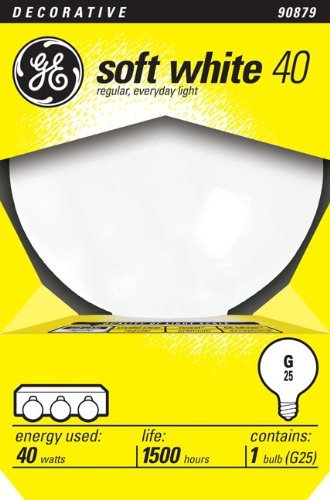 GE 12979-6 G25 Incandescent Soft White Globe Light Bulb, 40-Watt, 8-Pack