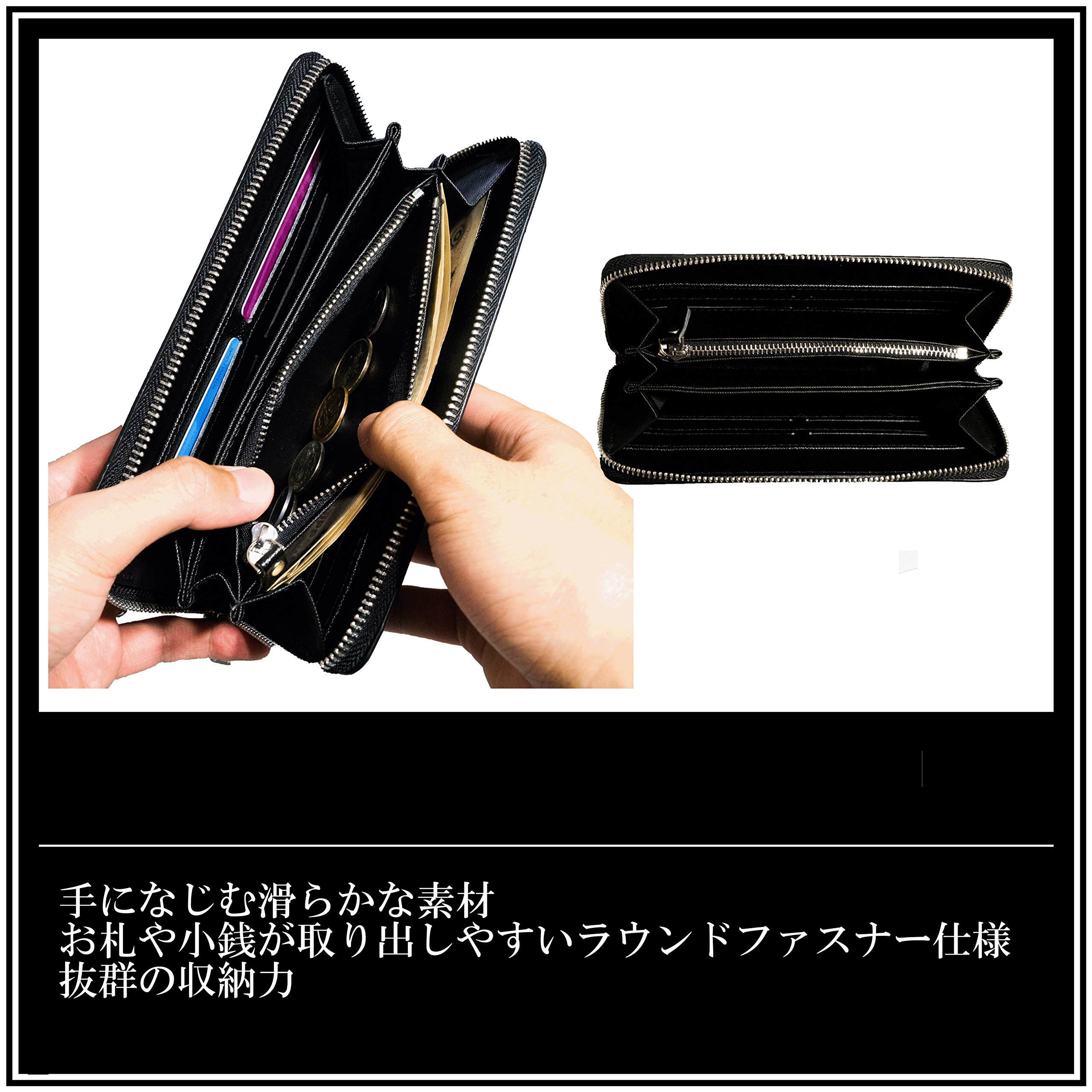 · Since it is an elaborate and simple design, it creates a chic atmosphere, with wallets, cards, zippered pockets etc. firmly attached, you can easily put paper money, small money and cards etc comfortably.