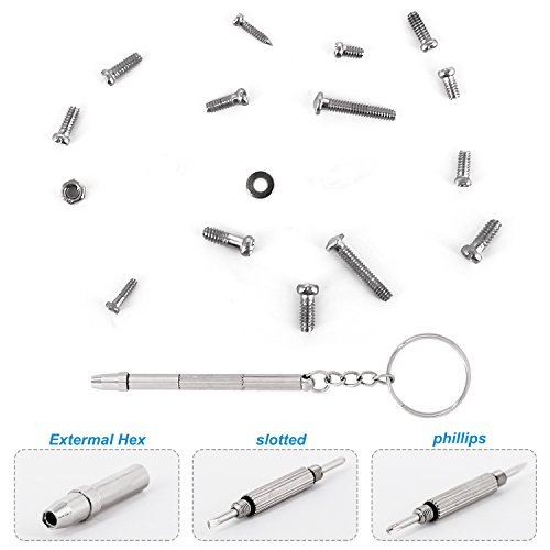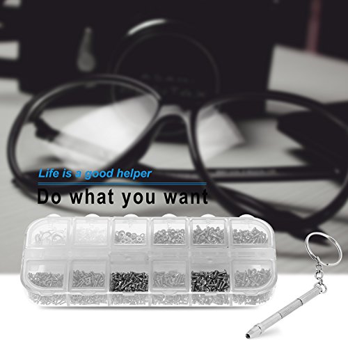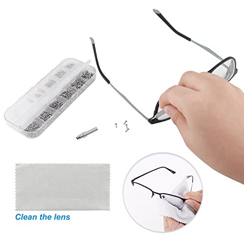 ?Specifications: Material: screw: stainless steel, nose pad: silicone Quantity: 1100Pcs screws nuts(8 styles) screw washers convex washer 5 pairs of nose pads, 1 Pc Microfiber Clean Cloth,1Pc micro screwdriver, 1 Pc storage separate box Color: clear as picture Weight: 98g/ 3.45ounce Storage case size: 5.12*5.9*0.59inch ?Package included: 1100Pcs screws nuts(8 styles) screw washers convex washer 5 pairs of nose pads, 1 Pc Microfiber Clean Cloth,1Pc micro screwdriver, 1 Pc storage separate box