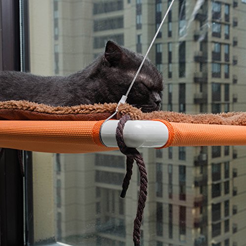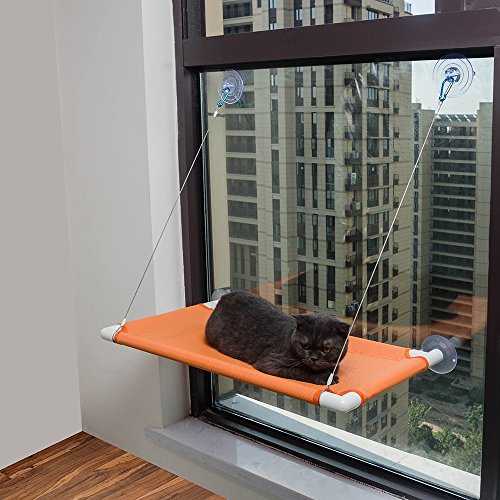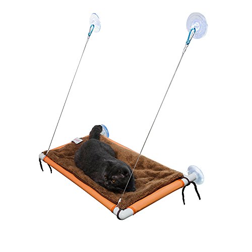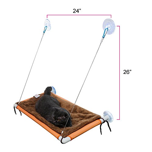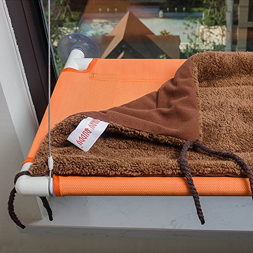 Cats deserve a warm sunbath and a good view of the outside world. TheFurry Buddy window cat perch outstands from other competing designs for so many reasons. It's constructed from 1 inch strong plastic tubes with food grade placemat mesh bed cover that's free of any chemical smells.? The cables connecting the frame with the upper suction cups are made of SS304 stainless steel and we cover all the metal part with soft rubber so your kitty can always be protected from any potential injuries.?Each cat perch also comes with a super soft fleece mat and you can easily knot it up onto the plastic frame by the 8 strings at the 4 corners. So this cat perch is perfect for all seasons. The four 3.5 inch big suction cups are specially engineered to hold up to 60lbs weight and they offer much greater reliability and life than other designs. WARNINGS: The?nature?of?suction?cups?in?general?is?that?they?occasionally?disengage?from?the?glass?surfaces.?The?best?thing?you?can?do?is?to?periodically?check?and?make?sure?that?the?suction?cups?are?well?secure?on?the?glass.?Please?replace?them?with?the?spare?ones?if?they?have?extensive?wear.?We?accept?no?responsibility?for?injuries?or?damage?to?windows,?pets,?animals,?people?and?things.?If?you?are?concerned?about?mounting?the?cat?perch?on?your?windows?for?any?reason,?then?we?recommend?you?buy?or?use?a?different?cat?perch?that?does?not?mount?on?windows?with?suction?cups.Please?also?note?that?win 0