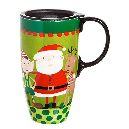 -. Title : Santa Reindeer and Elf Ceramic Travel Coffee Cup In Matching Gift Box