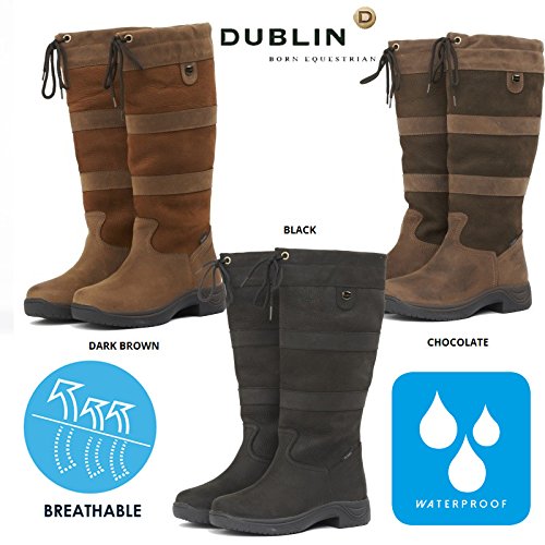 Studio : Weatherbeeta USA Inc. Publisher : Weatherbeeta USA Inc. Binding : Apparel Product Description Dublin Ladies Black River Tall Boots Introducing Dublin's best selling River Boot in a new color option - black! The waterproof leather and HBR waterproof membrane to 160mm offers total waterproof protection. The Dublin Black River Boots contain the Rider Comfort System (RCS) insole for all day comfort. There is an elastic gusset at the inside top of calf in addition to a drawstring at the top for an adjustable fit. Features: Best selling Dublin River Boot now offered in black Waterproof RCS insole for comfort Elastic gusset inside Drawstring for adjustable fit 0