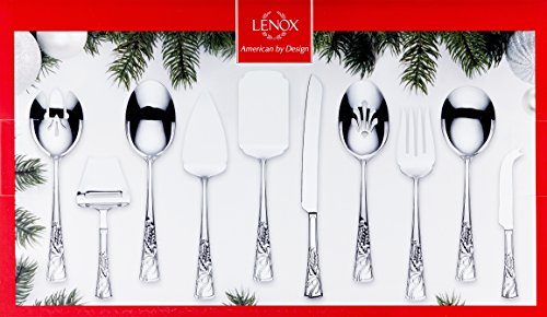 Studio : Lenox Publisher : Lenox Binding : Kitchen Product Description Introduced in 1974, the Lenox Holiday pattern became an instant classic, growing in popularity to become the #1 seasonal dinnerware in America. The iconic holly design combines with the legendary quality that only Lenox can offer to create a collection that has transcended generations to help make the most special time of year even more memorable. Best of all, this legendary collection is created by Lenox, America’s first name in home entertaining, known around the world for offering a unique combination of design artistry and superior quality for over 125 years. The confidence that Lenox has in the unmatched durability of every product they offer is backed by a lifetime breakage replacement policy to guarantee many years of enjoyment to each customer. All the serving and entertaining pieces you need for the holidays are now in one complete set. Set includes the following: Two Piece Salad Server, Cheese Knife, Cheese Plane, Cake Knife, Pie Server, Serving Spoon, Slotted Server, Serving Fork, Lasagna Server. The handles each feature a raised motif of holly and ribbon. 0