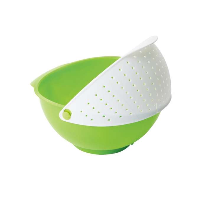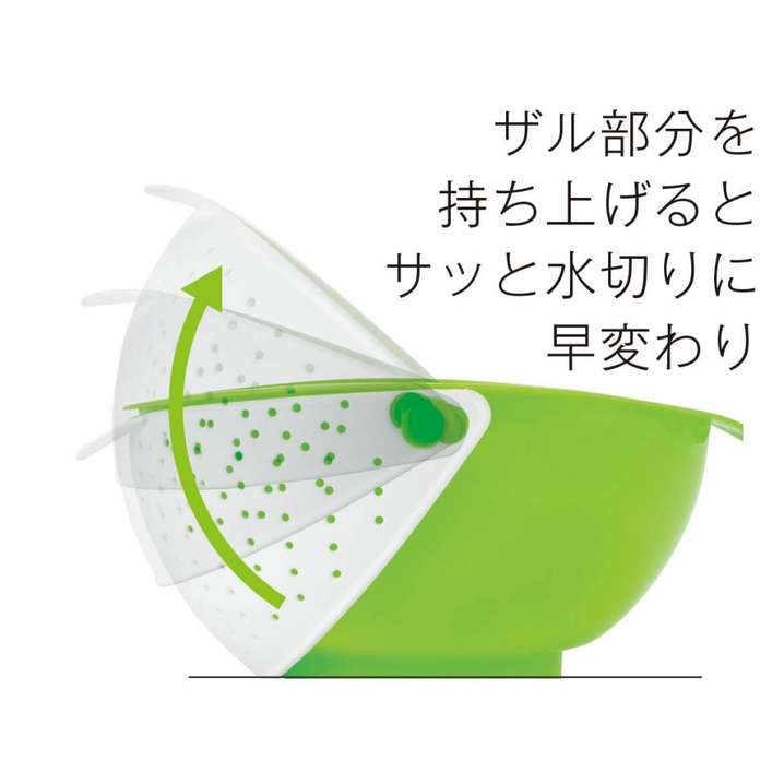 ●ボウル部分を持ち上げると、可動式のザルでそのまま水切りOK!お渡し用に、ちょっと差がつくオリジナルのデザイン袋が付属しています。
