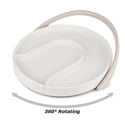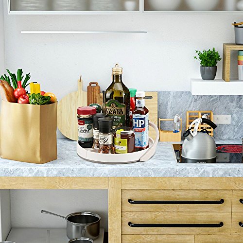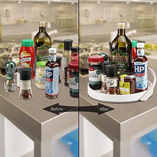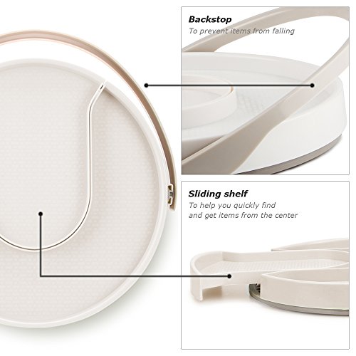 Funria Lazy Susan Turntable with Backstop Kitchen Organizer 360-degree Rotate, 11 Inch Turntable Rack Bin with Sliding Shelf for Kitchen Pantry, Cabinet, Countertop, Refrigerator (White)