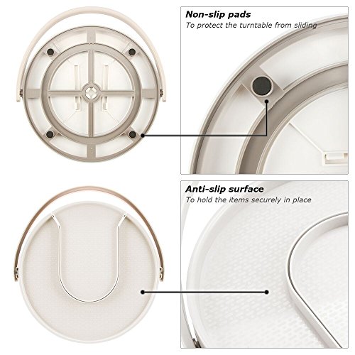 11-inch diameter design maximizes space to fit standard cabinets, smoothly rotates 360-degrees on stainless steel ball bearings.