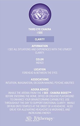 - Chakra Mood Guide – Clarity: Clarity scent is great for tapping into the sixth of the seven Chakras – “I See”. Helps you see all situations and experiences with the utmost clarity, by clarifying inner and outer vision, and meditation. Tap into your inner clarity through breath and affirmation.