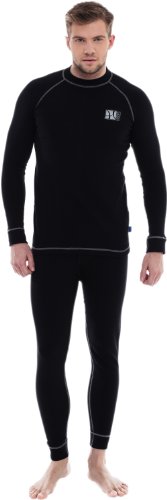 Effektive Ableitung von Feuchtigkeit und Schweiß nach außen, Antiallergisch und antibakteriell, Flache, nicht drückende Nähte, Außerordentlich dauerhafte Formen, Farben und Eigenschaften, Sowohl zu aktiver sportlicher Betätigung als auch zum alltäglichen Gebrauch, Weich und angenehm auf der Haut. VORTEILE VON SILVERPLUS® - Körperfeuchtigkeit und Wärme in Textilien sind der ideale Lebensraum für Bakterien. Bakterien verwerten Inhaltsstoffe der abgegebenen Körperfeuchtigkeit. Die Abbauprodukte dieser Verwertung riechen unangenehm. Dieser bakterienbedingten Geruchsbildung wirken SILVERPLUS®-Silberionen aus einem nahezu unendlichen Wirkstoffdepot entgegen. Hygiene und Frische für mehr textilen Komfort. Überragende Wasch- und Chemischreinigungsbeständigkeit. Textilien werden jetzt schon bei einer 40 °C - Wäsche hygienisch sauber. Synergismus von Hygienemanagement und optimiertem Feuchtigkeitstransport. Kein Einfluss auf das natürliche Gleichgewicht der Hautflora. Ökologische Sicherheit - keine Beeinflussung der biologischen Klärstufen bei der Abwasserreinigung. Liferumfang: 1x Lange Unterhose + 1x Langarm Shirt + 1x Thermoaktive Sturmhaube Material: 50% Baumwolle, 45% Polyester,5% Elasthan