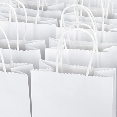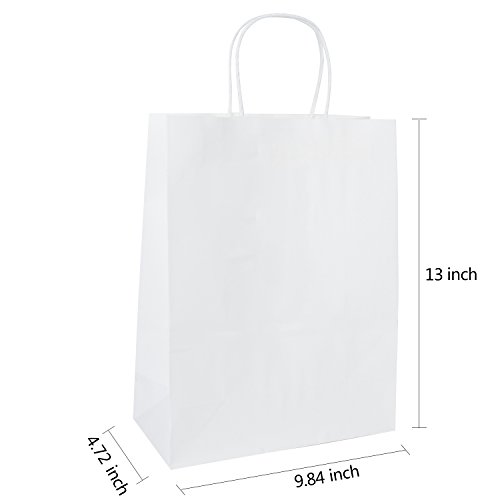 LaRibbons Kraft Paper Bags 24Pcs 9.84"x4.72"x13" Shopping Bag, Gift Bags, Party Bags, White Bags with Handles