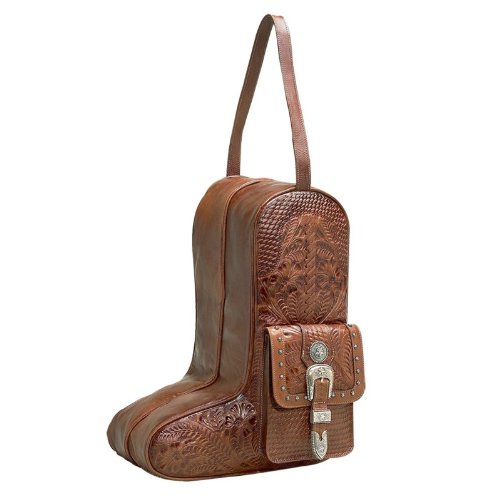 -. Brand : American West -. Department : unisex-adult -. Feature : Hand-tooled vegetable tanned leather / Antiqued silver spots and leather lacing / Hand-made decorative silver star buckle sets and conchos / Top carry handle / Front flap over pocket with snap closure -. ProductGroup : Apparel -. ProductTypeName : LUGGAGE -. Title : American West Retro Romance Boot Bag