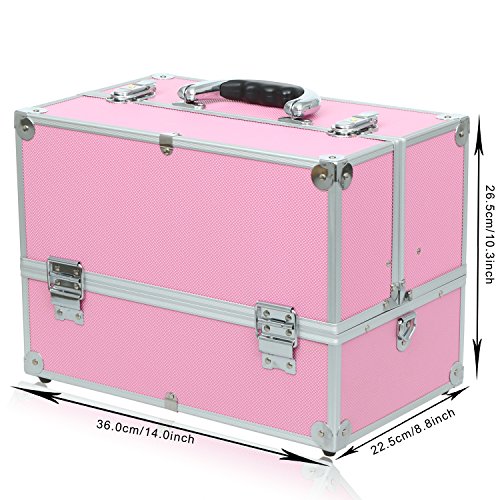 SUPERIOR QUALITY -- Made with durable aluminum and nontoxic ABS plastics, dust proof fabric as an interior, make the makeup train case more sturdy and last for a long time.