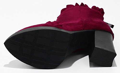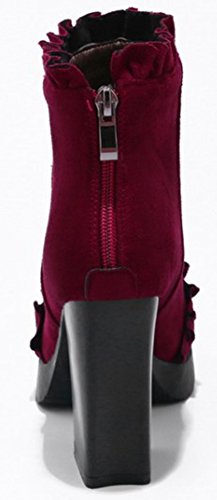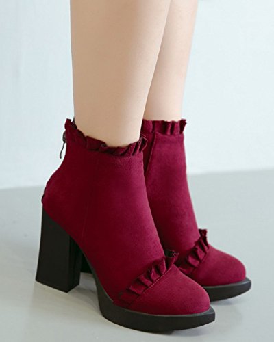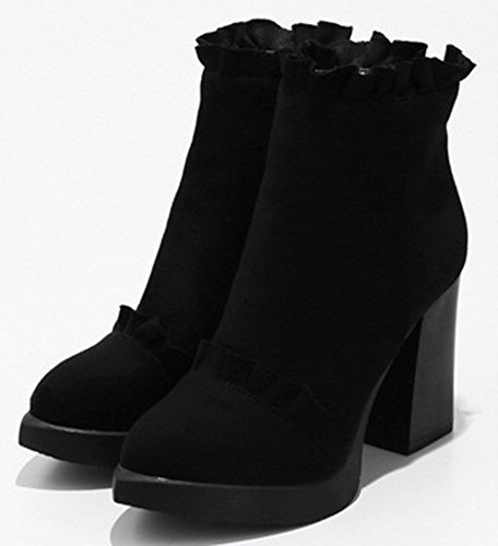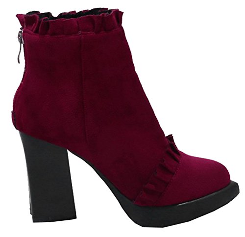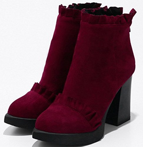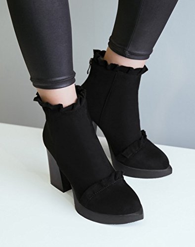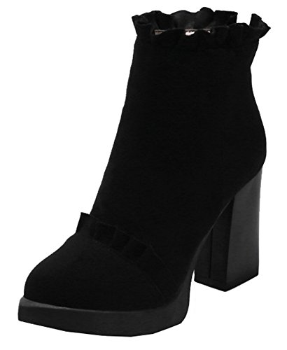 Binding : Apparel Product Description This pair of shoes is for women, girls, juniors and young ladies. You will look chic and stylish when wearing them. The heels measure 3.7 inches. You will feel comfy in their block heels. This pair of shoes features ankle high and solid faux suede upper. You will look sweet in their round toe design. Its simple classic design will offer you an extravagant simplicity. It's convenient for you to wear in their zip up closure design. The sole is made of good rubber. You will feel comfortable in their soft bottom. You can wear them to the office, school and shopping mall. They are of high quality and durable. We promise we will provide our customer with the best quality and lowest price. Your pleasant shopping experience is our eternal pursuit. Waiting for your coming! 0