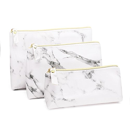 Joyful 3PCS White Marble Cosmetic Bag Set Women Casual Makeup Pouch Toiletry Organizer Case Pouch Storage Makeup Brushes Bag