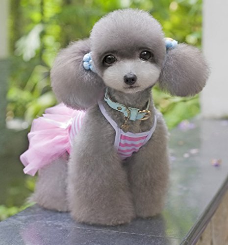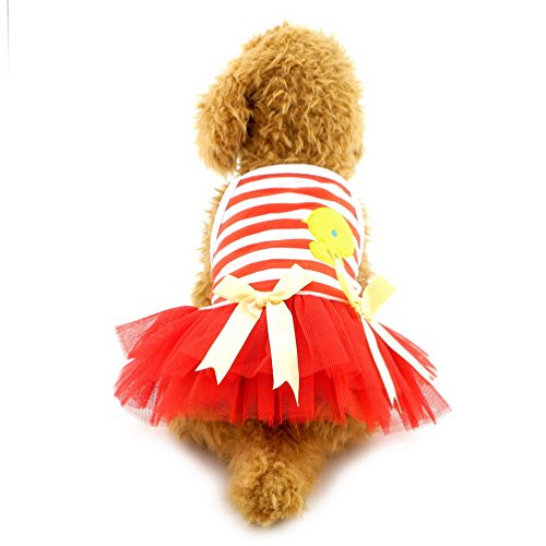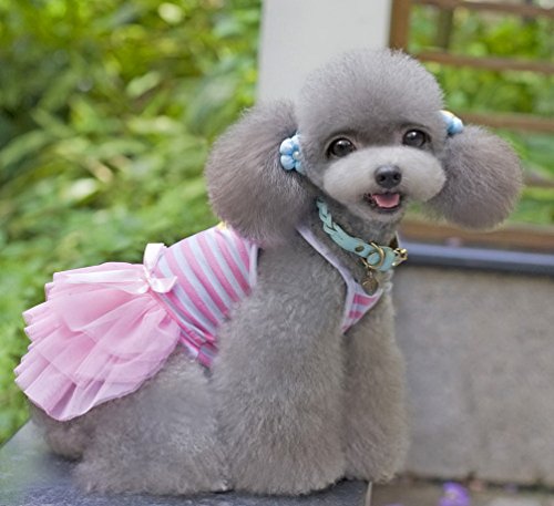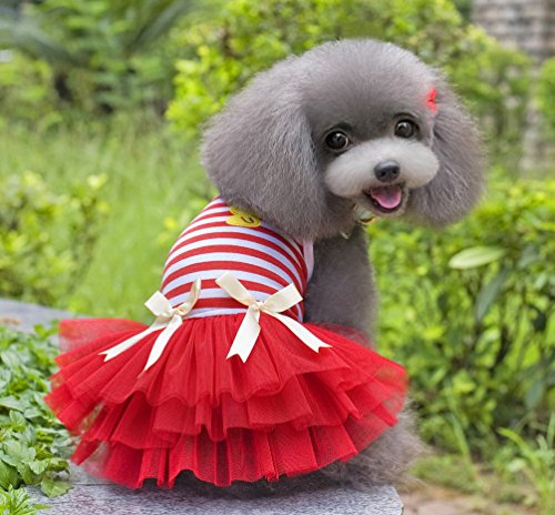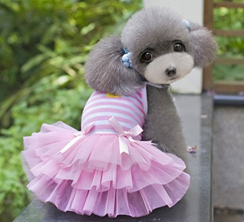 -. Title : SELMAI Striped Dog Tutu Dress Bowknot Gauze Tiered Princess Puppy Dress Skirt Party Beach Travel Female Doggie Clothes Apparel