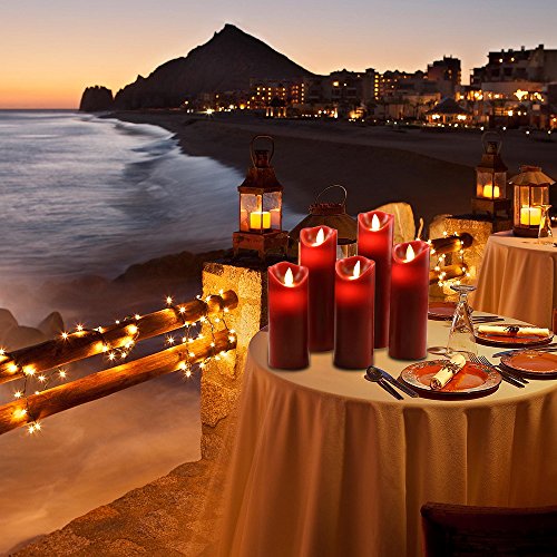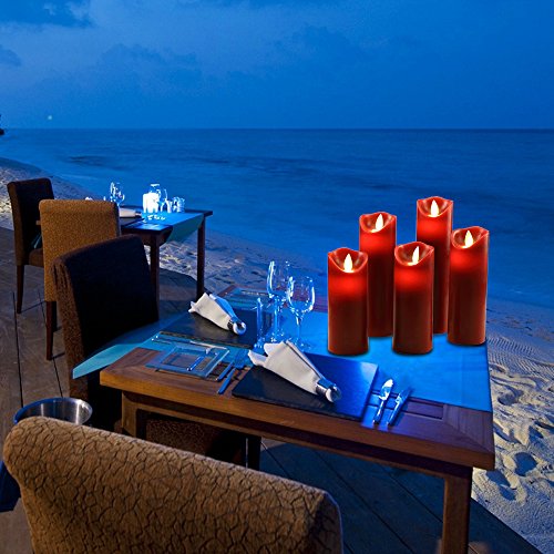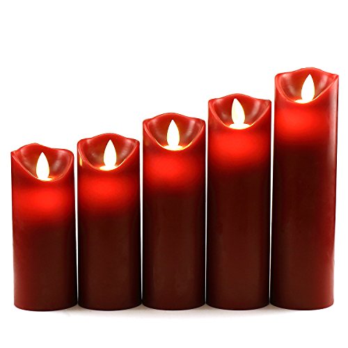 A COMPLETE SET OF FLAMELESS CANDLES: This value pack comes with 5 beautiful flameless pillar candles, 1 remote control with 10 different keys and a super easy to follow operating manual. Specifically, this set includes a 4" pillar, a 5" pillar, a 6" pillar, a 7" pillar and a 8" pillar (each 2.2" diameter) candle, all coming in an elegant red color that matches any house. (Batteries are not included in this package.)