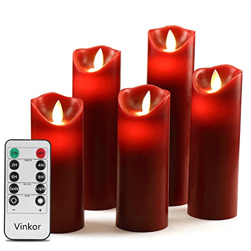Vinkor Flameless Candles Flickering Candles Burgundy Red Color Decorative Battery Flameless Candle Classic Real Wax Pillar With Dancing LED Flame & 10-key Remote Control 2/4/6/ 8 Hours Timers