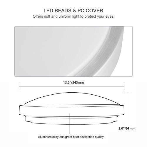 LEDGLE 25W LED Flush Mount Ceiling Light Round Ceiling Lamp Surface Mounted Downlight, Daylight White 6000K, 220W Incandescent Bulbs Equivalent, Non Dimmable, 1800lm, 100-120V, 13.6'' Diameter