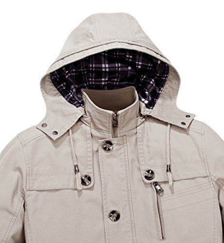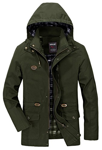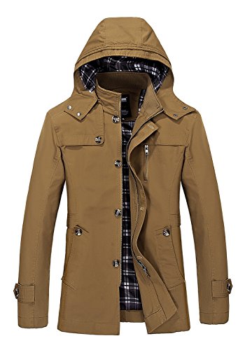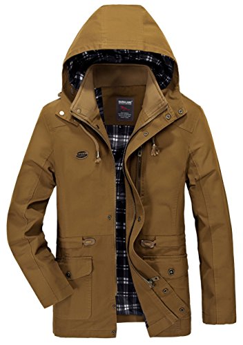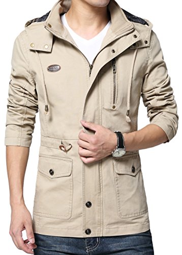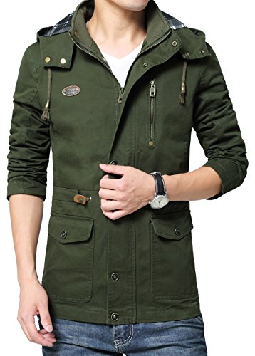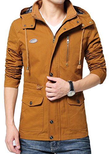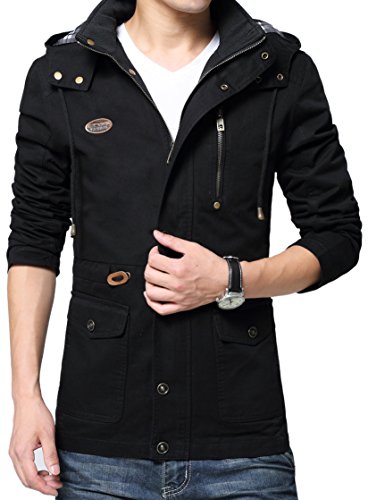 Binding : Apparel Product Description Vcansion Men's Cotton Lightweight Front Zip Button End Hoodie Jacket is designed with soft material shell: 100% cotton, lining: 100% polyester, mid long with a drawstring on the hood, you can adjust it to be a little bit tight or relaxed due to the weather. With buttons on the hood and buttons all the way along the zipper to keep cold wind out. With a fashion logo and zipper decoration on the chest, truly a great piece for fall and spring. You can also wear it with warm underwear in winter. Outerwear Type: Jackets Coats Type: Slim Fit Gender: Men Collar: Hooded Closure Type: Zipper and Button Season: Autumn / Winter / Spring ABOUT SIZE US Small : Chest-43.3" Shoulder-18.3" Length-28.3" Sleeve-24.2" US Medium : Chest-44.9" Shoulder-18.9" Length-29.1" Sleeve-24.8" US Large : Chest-48" Shoulder-19.5" Length-30.7" Sleeve-26" US X-Large : Chest-49.6" Shoulder-20.7" Length-31.5" Sleeve-26.4" Please compare the detail size with yours. Allow 1-3cm differs due to manual measurement,thanks. If you have any question,please contact us via E-mail, we'll try our best to help you. The normal arrival time of fulfilled by Amazon is between 1 and 3 days and the normal arrival time of dispatched from Seller is between 2-3 weeks and the Expedited shipping service is between 7-10 days. 0
