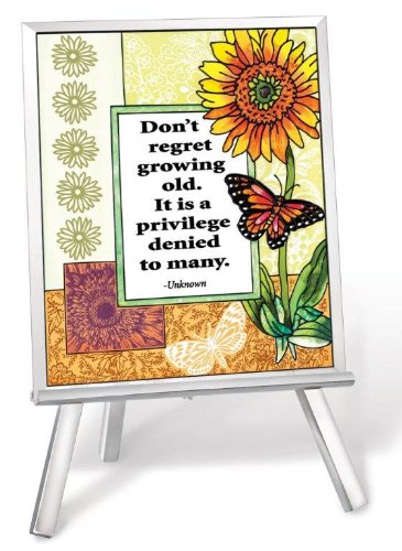 Amia 41224 Hand-Painted Glass Plaque with Easel, 5 by 6-Inch, Don't Regret Growing Old