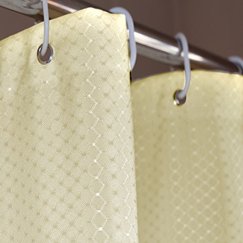 Eforgift Easy Care Polyester Shower Curtain Water Repellent Mildew Free Wrinkle Resistant, Thick Yellowish Waffle Weave Fabric Curtain for Bath Long 72-inch x 78-inch, Plastic Hooks and Metal Grommets