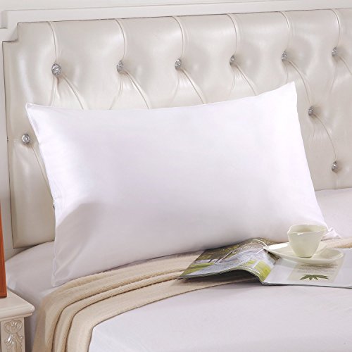 OOSILK Mulberry Silk Pillowcase with Hidden Zipper 19mm ,Cotton Underside, Queen (20in 30in) White