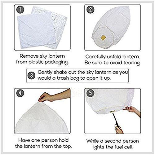 Noted: 1. The Sky Lanterns can only be used with the accompanying fuel cell, DO NOT try to replace with other flammable objects. 2. Do not use Sky Lanterns that have been damaged or torn. Stay away from flammable objects, tall buildings, and airports when using the Sky Lanterns. 0